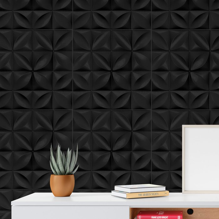 Kit C/20 Placas Mini Petalas de Pvc Preta Efeito Gesso Lavável 50cmx50cm Preto
