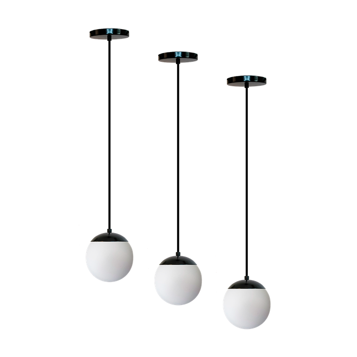 KIT C/3 LUSTRE PENDENTE GLOBO JABUTICABA STUTTGART PRETO PRETO