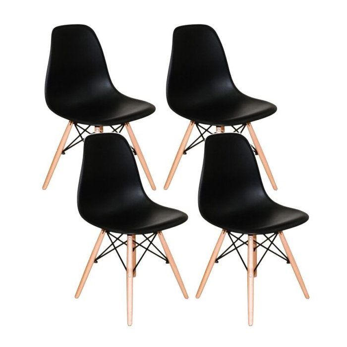Kit c/ 4 Cadeiras Charles Eames Wood DKR Eiffel Pretas