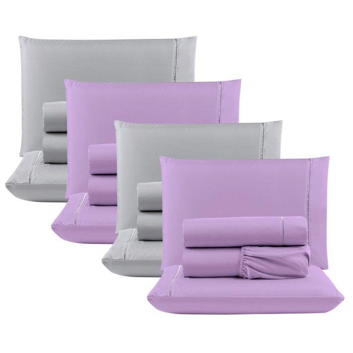 Kit c/ 4 Jogos Cama Lençol Unique Casal Padrão Micro Percal 400 Fios Ponto Palito 4 Peças - Lilás + Lilás