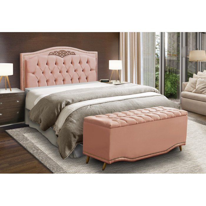 kit Cabeceira 140 cm + Calçadeira Imperio Rosa