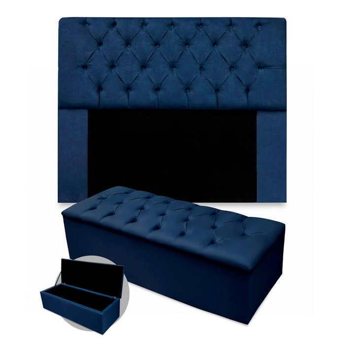 Kit Cabeceira + Calçadeira Baú Mirage King Size 195cm:azul Marinho Azul Marinho