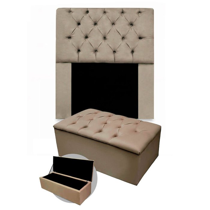 Kit Cabeceira + Calçadeira Baú Mirage Solteiro 120cm:bege