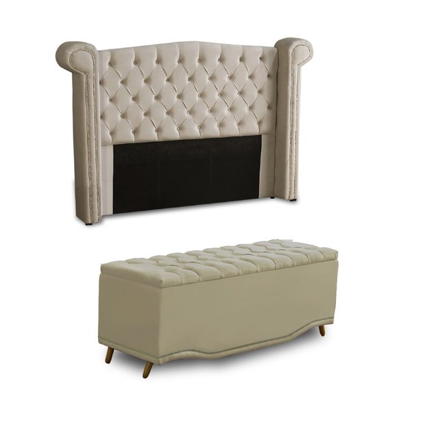 KIT + Cabeceira Com Recamier Baú Dunas Princesa em captonê 0,90 solteiro Cama Box Bege Veludo Dalaqu Bege
