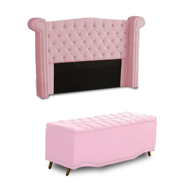 KIT + Cabeceira Com Recamier Baú Dunas Princesa em captonê 0,90 solteiro Cama Box Rosa Bebê Corino D Rosa Bebê