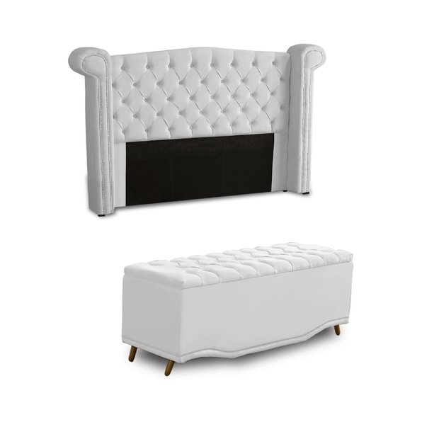 KIT + Cabeceira Com Recamier Baú Dunas Princesa em captonê 1,95 Casal Cama Box Branco Corino Dalaqua Branco