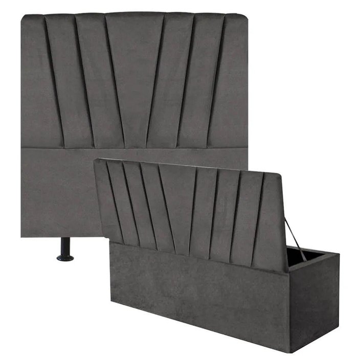 Kit Cabeceira de Cama Box Casal com Recamier Saori 140 Cm Corino Cinza Cinza
