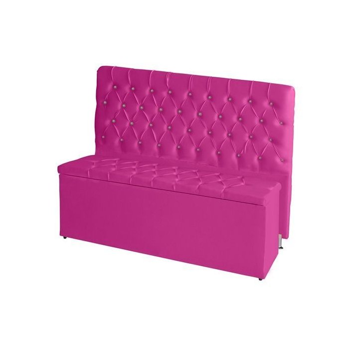 Kit Cabeceira de Cama e Calçadeira Baú Estrela King 195 Cm Suede Capitonê Rosa Pink Casa Móveis e de
