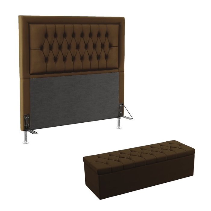 Kit Cabeceira Decorativa Para Cama Box Antares e Calçadeira Sagitarius 195 Para Cama King Sued Marro Marrom