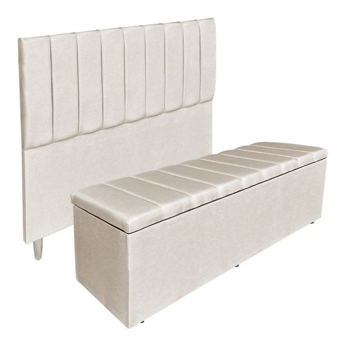 Kit Cabeceira e Calçadeira Baú Casal King 1,95m Londres Veludo Bege Dal Poz Estofados