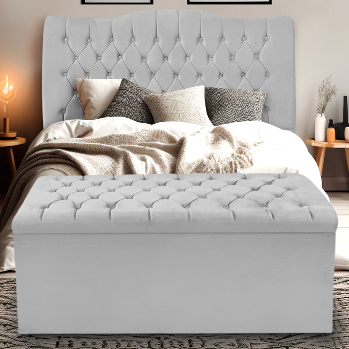 Kit Cabeceira e Calçadeira Baú Dunas Casal 140 Cm - Veludo Cinza