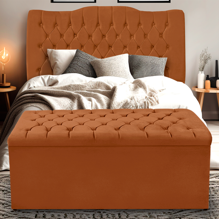 Kit Cabeceira e Calçadeira Baú Dunas Queen 160 Cm - Veludo Terra Cota