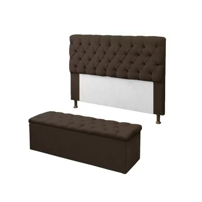 Kit Cabeceira e Calçadeira Baú Mirage Casal 140cm:Marrom