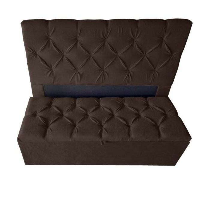 Kit Cabeceira Estofada Para Cama Box Casal 140 Cm + Calçadeira Baú Repuxe - Suede Marrom Café
