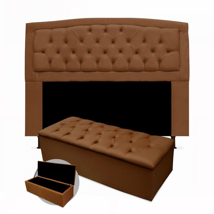 Kit Cabeceira Geovana + Calçadeira Baú Mirage Casal 140cm:marrom