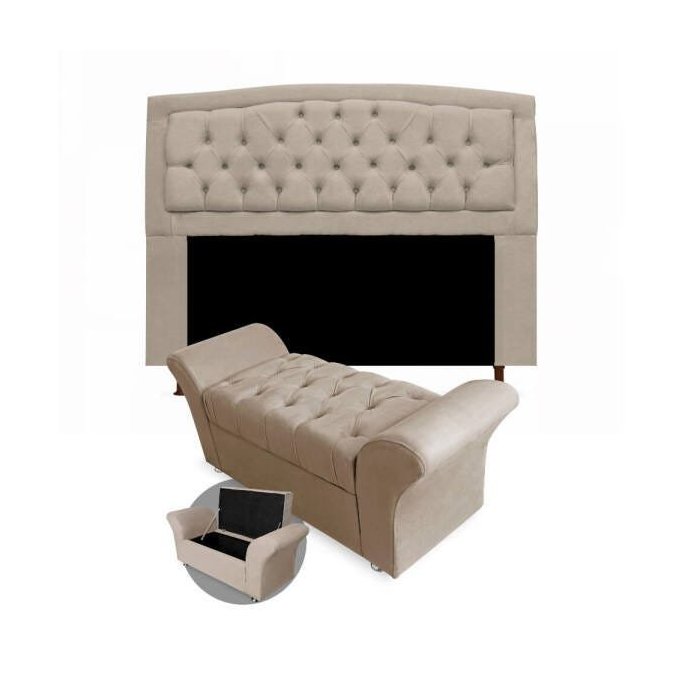 Kit Cabeceira Geovana + Calçadeira Baú Veneza King Size 195cm Suede:bege