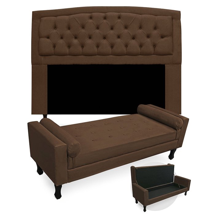 Kit Cabeceira Giovana e Calçadeira Felix Cama Casal Box 140 Cm Suede Marrom - Twdecora Geovana e Fel