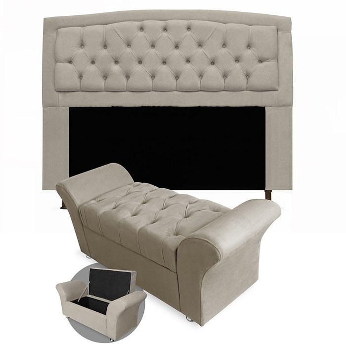 Kit Cabeceira Giovana e Calçadeira Veneza Casal 140 cm Suede Bege - Twdecora Giovana e Veneza