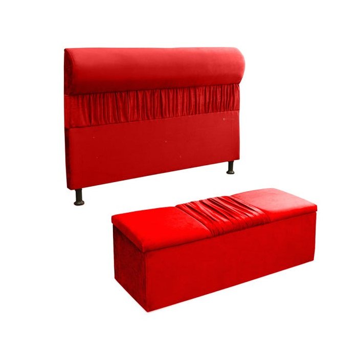Kit Cabeceira Mais Calçadeira Baú King 195cm Para Cama Box Vitória Suede Vermelho - DS Estofados Vermelho