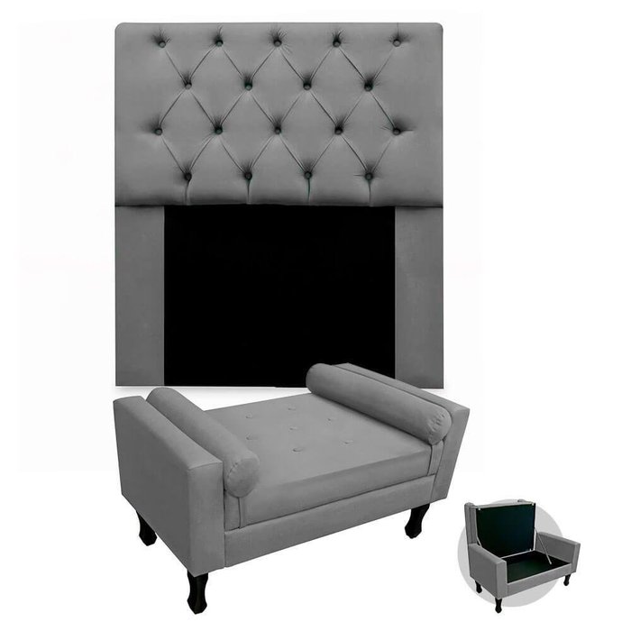 Kit Cabeceira Mirage + Calçadeira Baú Felix Solteiro 100cm Suede cinza Cinza