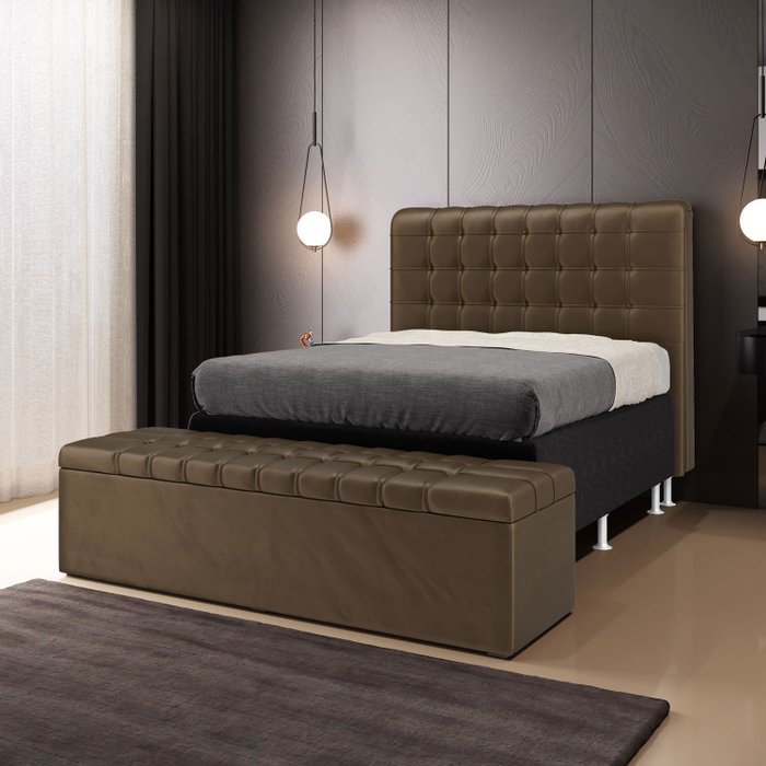 Kit Cabeceira Rana 195 King e Calçadeira Alpha N-029 Veludo Capuccino Aradecor