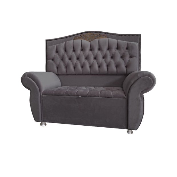 KIT Cabeceira + Recamier Baú Dunas Dubái Cinza veludo Linha Alta 1,40 casal Dalaqua-Decor Cinza