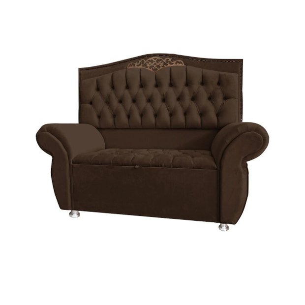 KIT Cabeceira + Recamier Baú Dunas Dubái Marrom veludo Linha Alta 1,40 casal Dalaqua-Decor Marrom