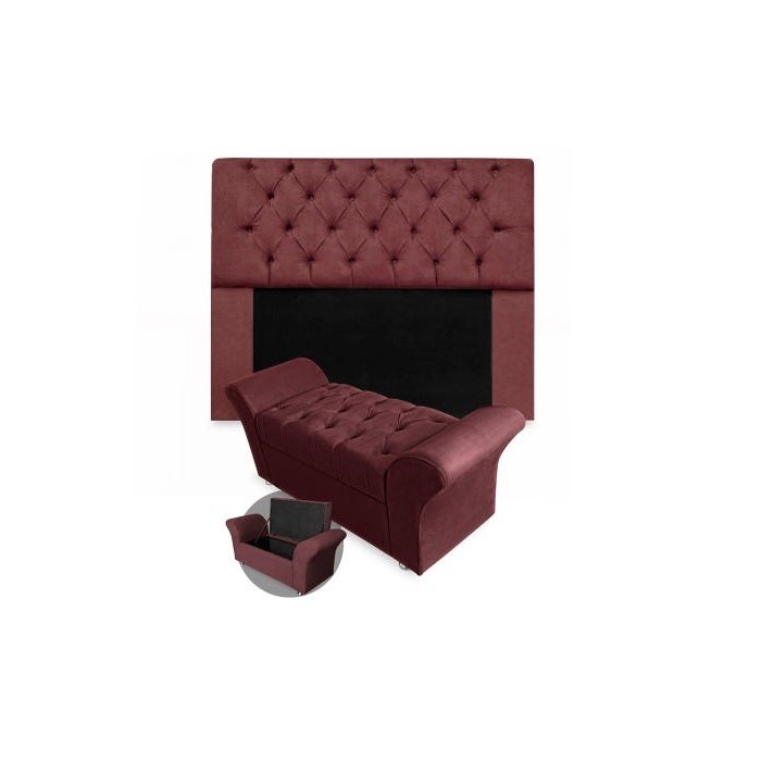 KIT CABECEIRA RIO CASAL 1,40 MAIS CALCADEIRA VENEZA 1,40 SUEDE BORDO Bordo