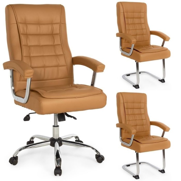 Kit Cadeira De Escritório Presidente Molas Ensacadas + 2 Cadeiras Base Fixa Presidente - Caramelo