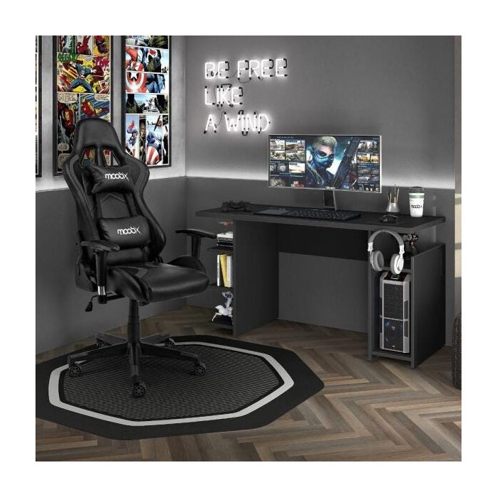 Kit Cadeira Gamer Moobx Thunder Preto + Mesa Gamer Mx Preto com Gancho para Headset - Moobx