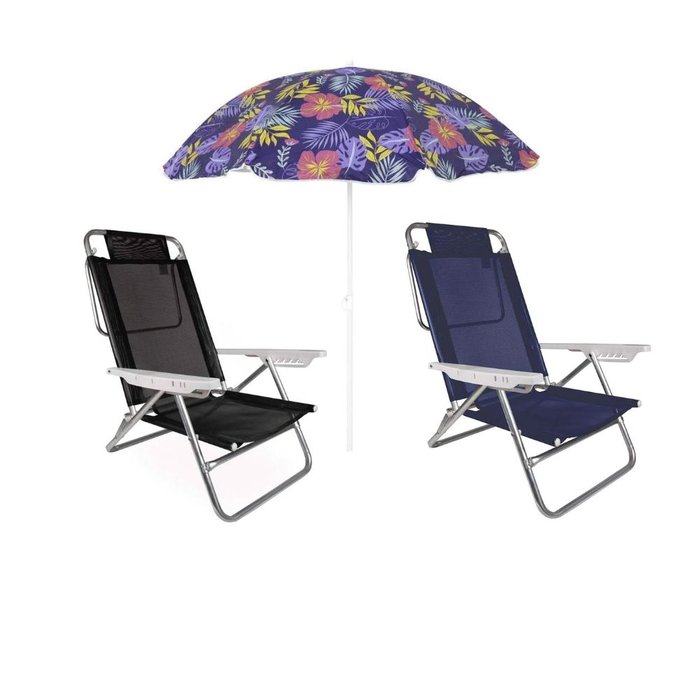 Kit Cadeira Summer + Cadeira Reclinável + Guarda Sol Mor