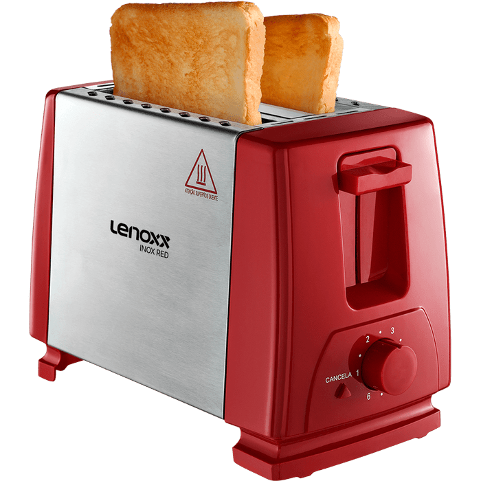 A Torradeira Inox Red da Lenoxx é compacta, possui 6 níveis de tostagens, botão cancela e alavanca de acionamento. Tem a função de tostar, aquecer até 2 torradas por vez e desliga automaticamente.