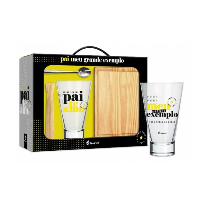 O Kit Caipirinha é composto por um copo, socador, colher e uma tábua e vai te auxiliar no preparo de uma das bebidas mais famosas do país. Só vai ficar faltando o limão, a cachaça, o açúcar e o gelo pra ficar no ponto e você aproveitar.
