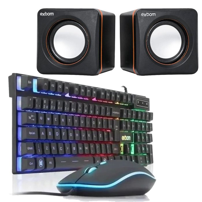 Mini Caixa De Som Para Computador USB 5W CS-39 Preta Exbom A caixa de som 2.0 para computador ou dispositivos com saída P2 (como smartphone tablet notebook entre outros), é um produto com design inovador. Reprodução de sons com nitidez fazendo que o simples uso do computador ou aparelhos com saída de P2 se torne uma experiência mais rica e divertida. Possui controle de volume e a alimentação de energia se dá por meio da entrada USB. Especificações Técnicas: Fonte de alimentação: 5V USB Saída de áudio: 3,5 mm (P2) Potência de saída: 5W (2.5W cada) Sensibilidade: -65dB Impedância: 4 Ohms Possui controle de volume Frequência de resposta: 100Hz-20kHz Dimensão das Caixas: 7,2 x 7,2x 7cm cada caixa Dimensão dos Alto-falante: 2 polegadas x2 Peso: 300g O Kit Teclado e Mouse Gamer Usb Bk-G550 une qualidade e beleza. É composto por um teclado Usb e teclas macias/confortáveis e um mouse óptico gamer. Possuem iluminação de Led colorida, que confere um ar moderno e divertido. Funcionamento Plug and Play, não necessita de software para instalar, basta conectar o teclado à porta Usb. Informações técnicas teclado Produto: Novo Marca: Exbom Modelo: Bk-G550 Cor: Preto Sistema: Membrana Tipo de conexão: Com Fio Conector: Usb Tipo do cabo usb: Emborrachado Padrão: ABNT2 Quantidade de teclas: 107 Estilo das teclas: Suspenso Acabamento: Plástico Iluminação led Rgb: Azul, Verde, Vermelho Ajuste de ângulo: Não Compatível: Windows 8/ 10/ 7/ Vista/ Xp/200/ Osx/ 10.2 ou superior Informações técnicas mouse Resolução Dpi: 800/1200/1600/2400 Número de botões: 5 Tipo de conexão: Com fio Tipo de cabo usb: Emborrachado Conector: Usb Led: Sim (altera cor automaticamente, sem escolha de cor) Pesos e medidas (aproximados) Medidas do teclado: 4 x 13 x 44 cm (altura x largura x comprimento) Medidas do mouse: 4 x 7 x 12 (altura x largura x comprimento) Comprimento do cabo usb teclado: 1,30 m Comprimento do cabo usb mouse: 1,20 m Peso bruto: 1,300 Kg