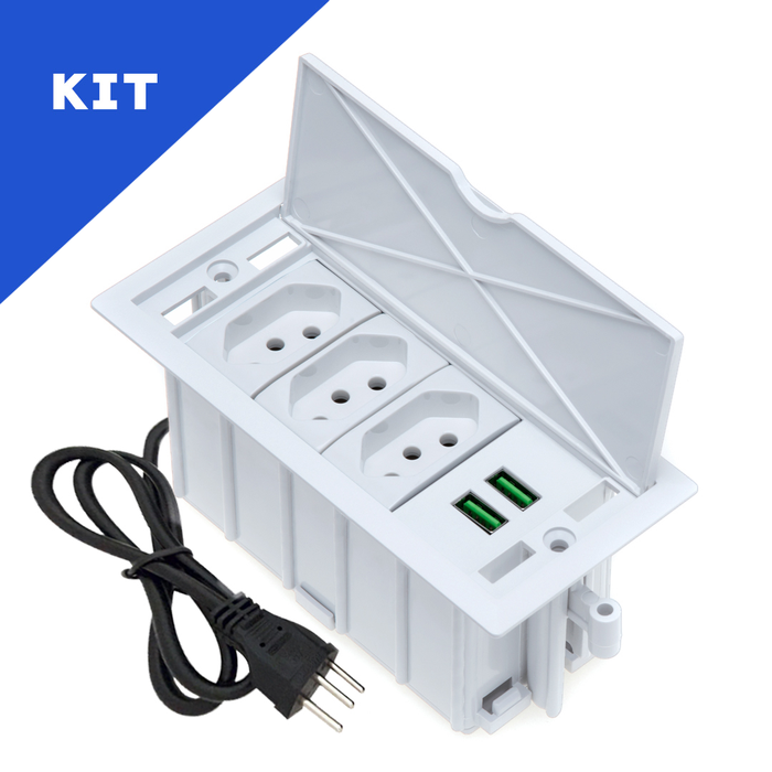 Kit Caixas de Tomadas 4 Blocos Basculante 3tom 10a 2usb 4.9a