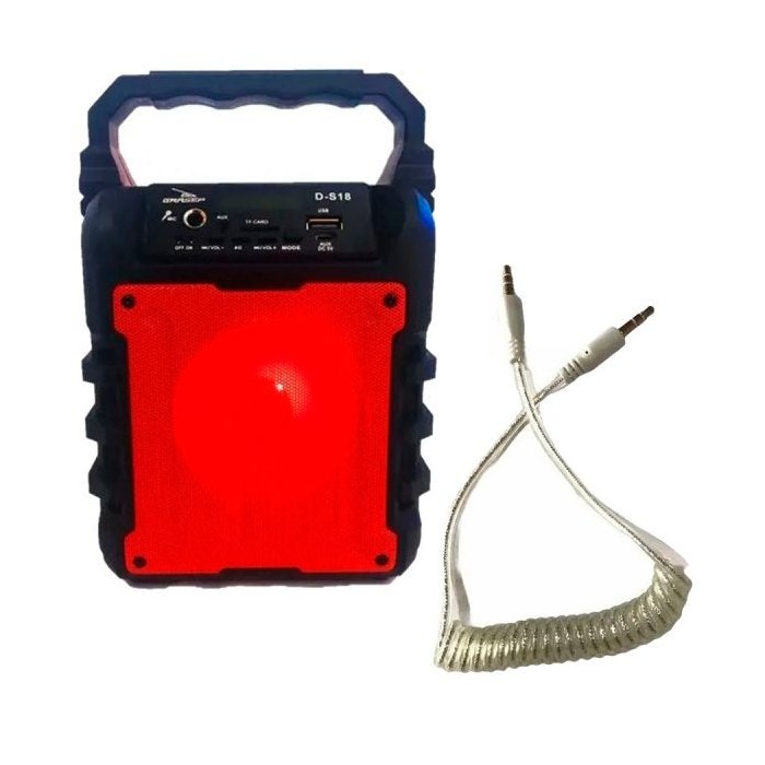 Kit Caixinha Som Ds18 Vermelha+ Cabo Auxiliar P2 1,2M Branco