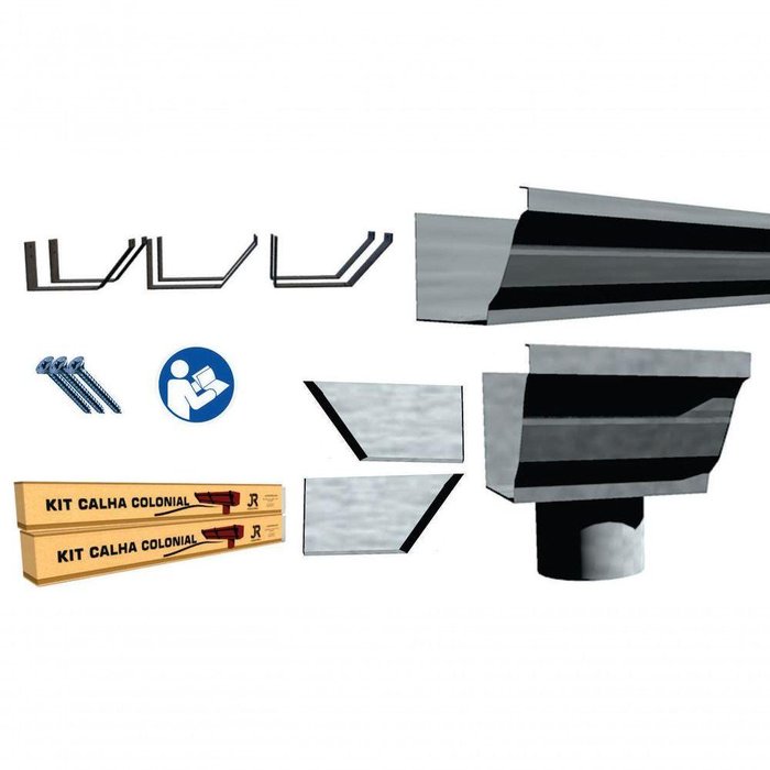 A Calha de Beiral Colonial da JR é muito mais que uma calha comum, é uma peça decorativa, que além de ter função de escoar água do seu telhado, embeleza e valoriza o seu imóvel.O Kit acompanha manual de instruções impresso.A instalação é super fácil, e necessita apenas de ferramentas básicas.Acompanha:3 Módulos de Calhade Beiral de 1,35m;4 Suportes2 Tampas (1 Direita 1 Esquerda)1 Kit Bucal 66mm1 Manual Impresso;