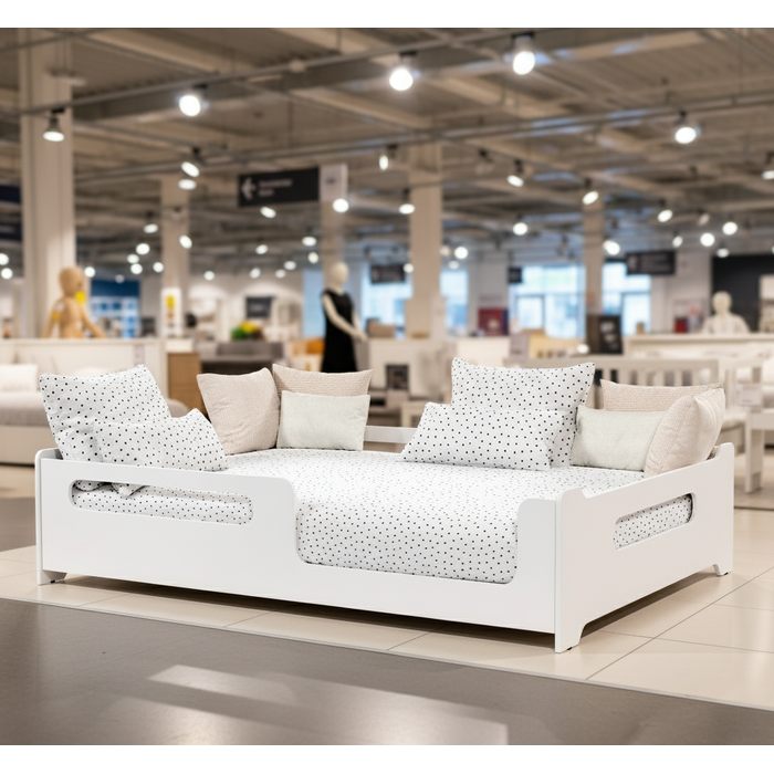 A Cama Montessoriana Casal Branca foi desenvolvida especialmente para acompanhar as crianças na transição do berço para a cama — um momento importante que pede conforto e segurança.