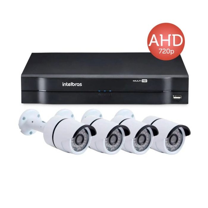 Este Kit contém quatro câmeras da marca Jortan AHD 720p com 20 metros de infravermelho e um DVR Intelbras MHDX 1004 G3.