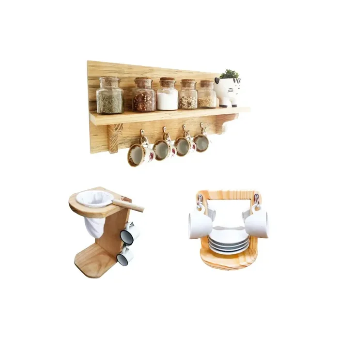 Kit Cantinho do Café Com Prateleira Suspensa Organizadora + Suporte Para Coador de Café + Porta Xíca