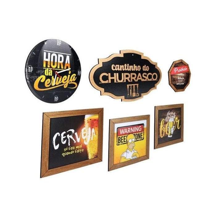 Kit Cantinho Do Churrasco Quadros Relógio Plaquinhas