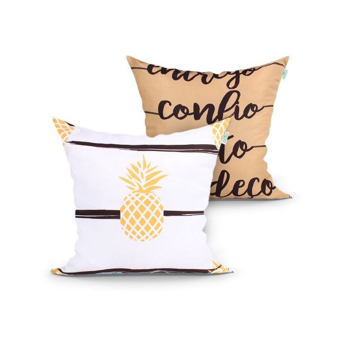 Kit Capa Almofada Decorativa Clássica Abacaxi Kit com 2 Unidades 45cm x 45cm com zíper