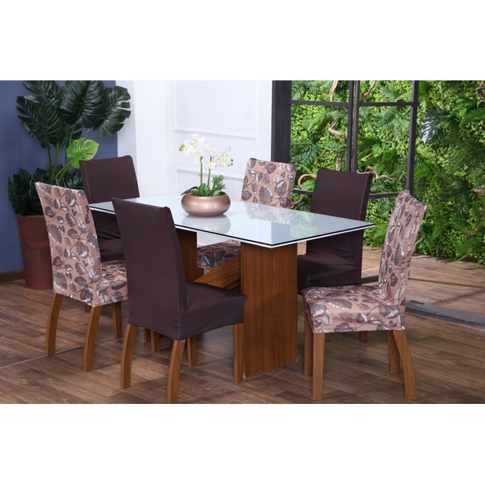 Kit Capa de Cadeira 6 Peças Sala de Jantar Protege o Estofado Renova o Visual Malha Gel Mista 5 Folh