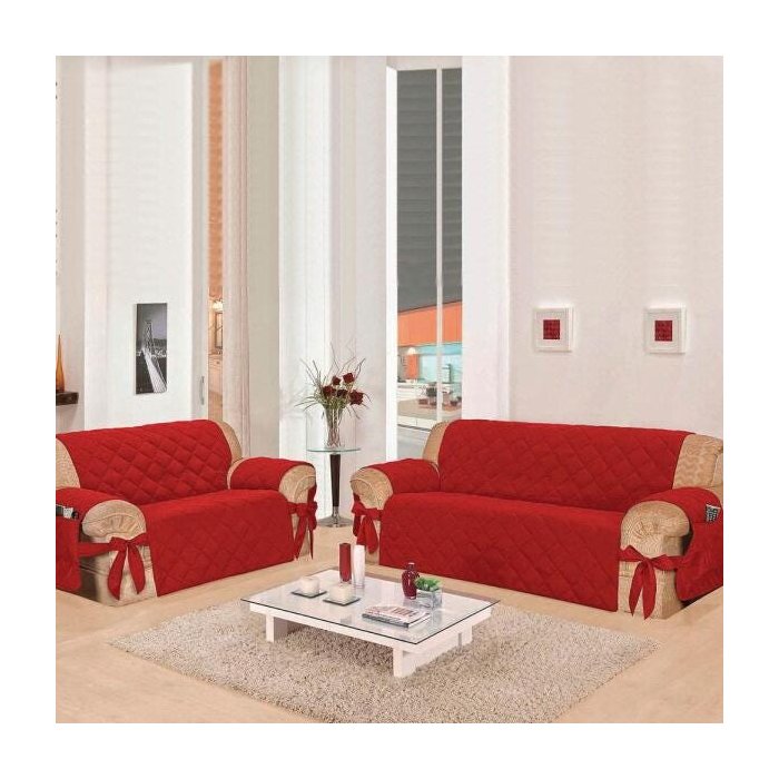 Kit Capa de Sofá Premium 2 e 3 lugares Vermelho e Esteira para Sofá com Porta Copos Flexível