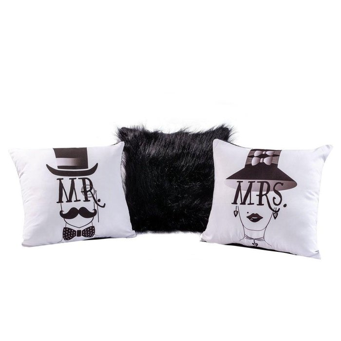 Kit Capas De Almofadas Miss E Mister Preto Plush 03 Peças - 45cm X 45cm