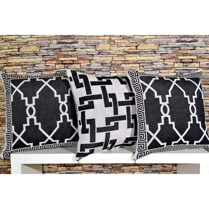 Kit Capas de Almofadas Rústico Dupla Face 3 Peças - Thais Arte & Tear Kit Capa de Almofada preto e cru
