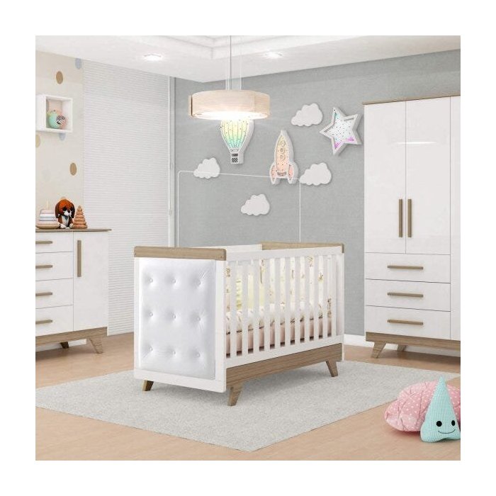 Kit Capitonê Berço Retrô Móveis Peroba Branco