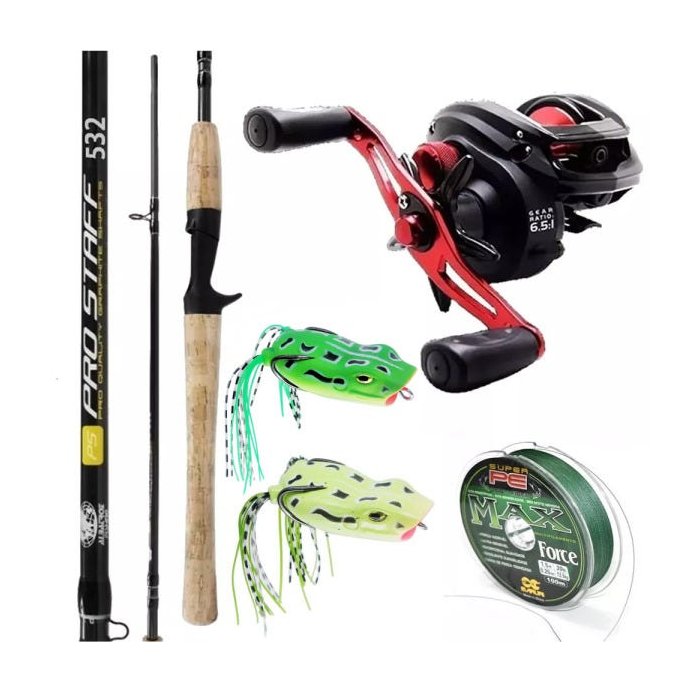 Kit Carretilha Maruri Direita 10 rolamentos + Vara para Carretilha Carbono Pro Staff 10-17 Libras 1