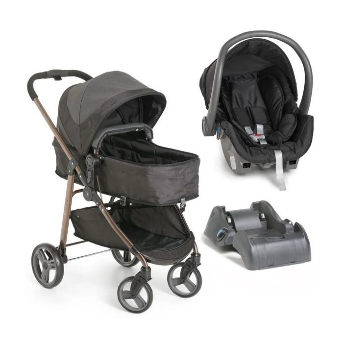 Kit Carrinho Galzerano Olympus Preto + Bebê Conforto + Base Para Carro