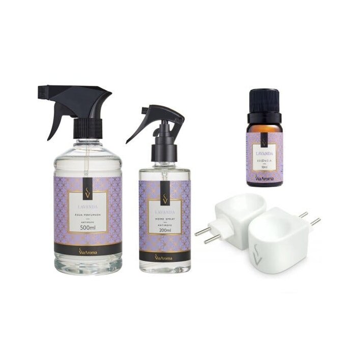 Kit Casa Perfumada Via Aroma - Água Perfumada - Home Spray - Difusor Elétrico e Essência - Lavanda
